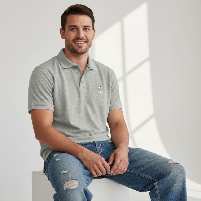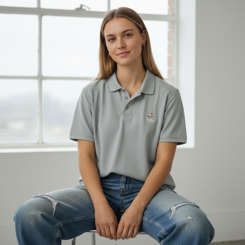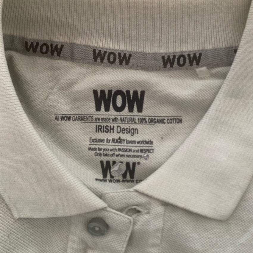 – Bordado WOW en el pecho y en el cuello (parte trasera)