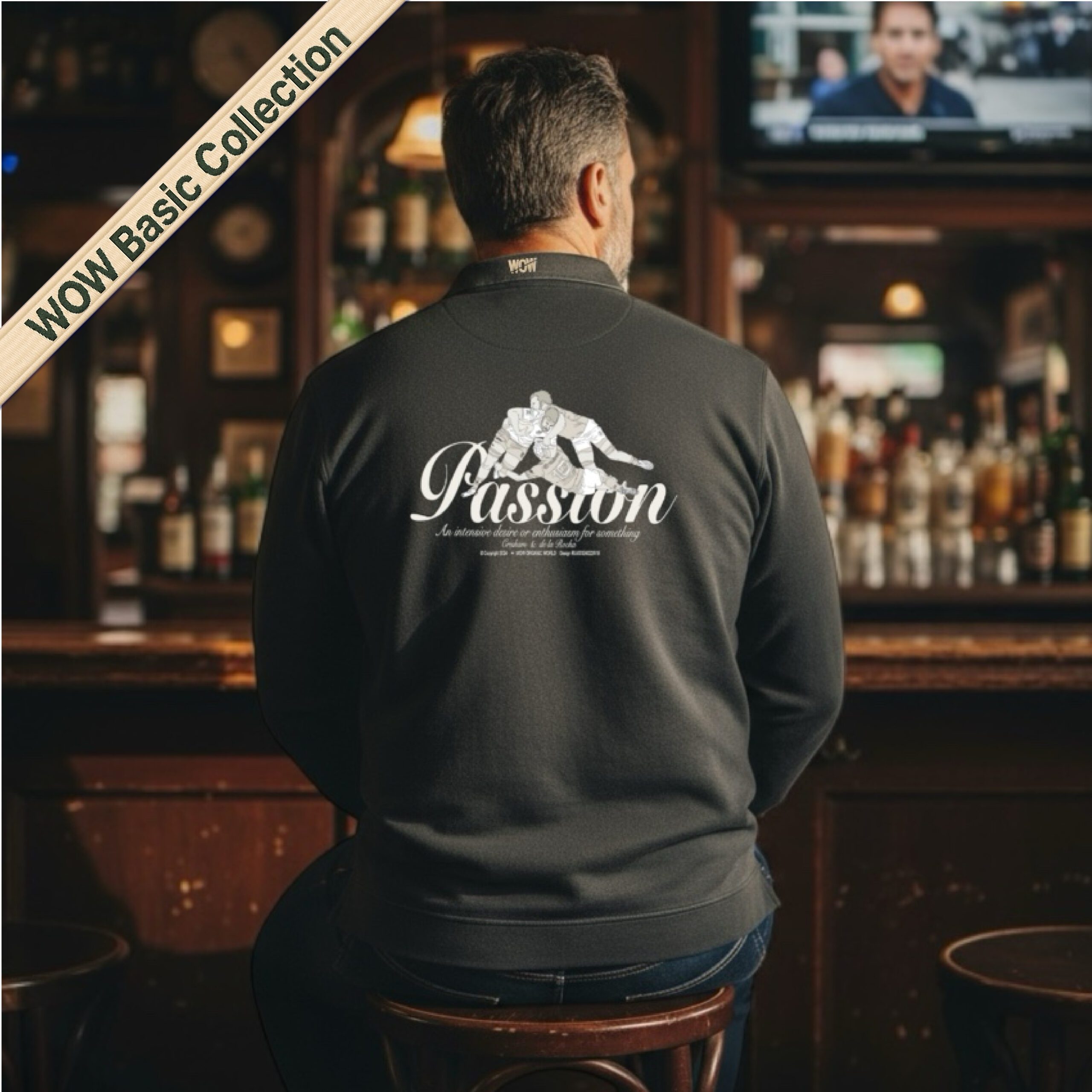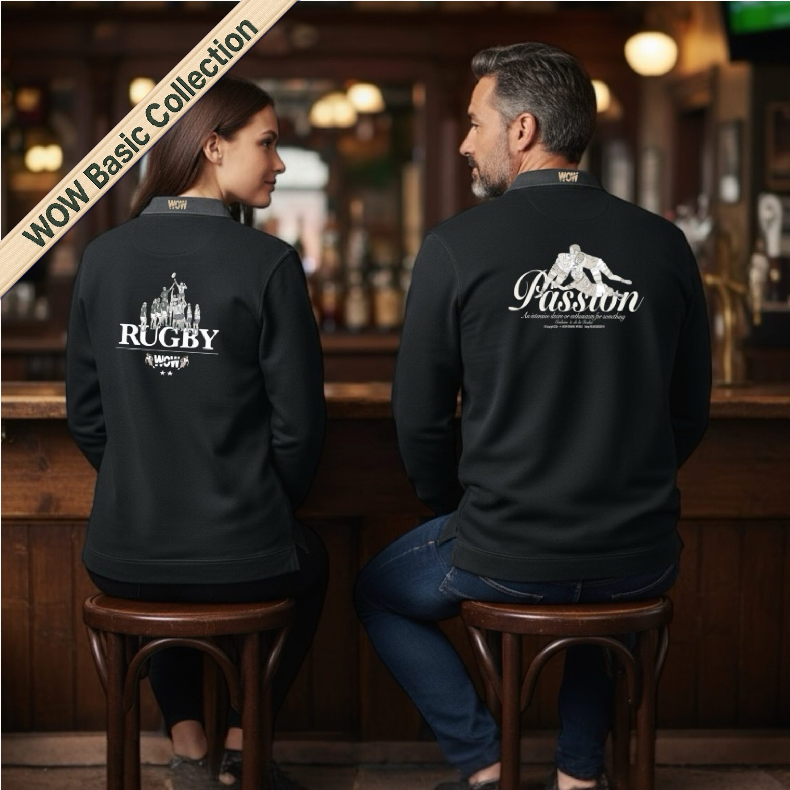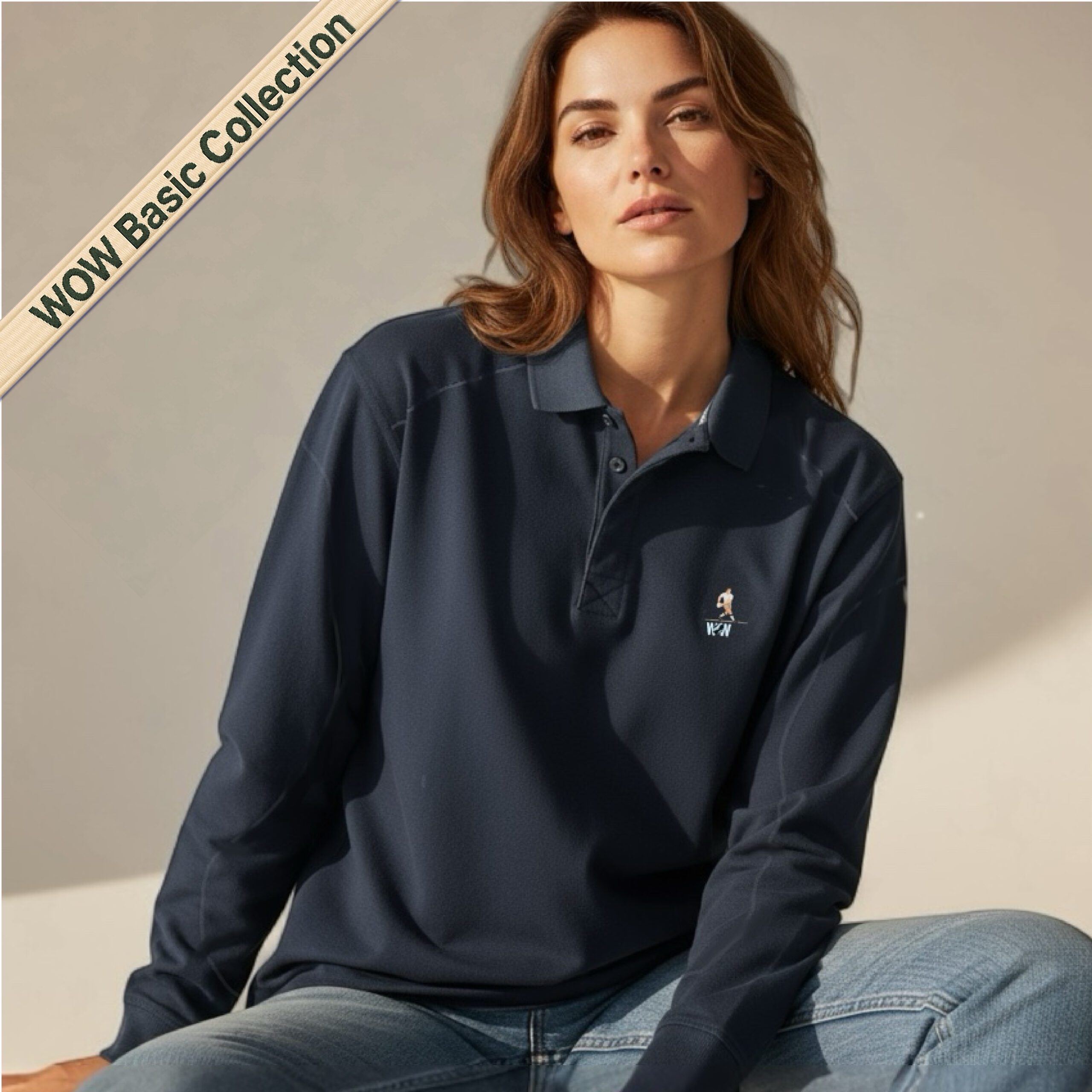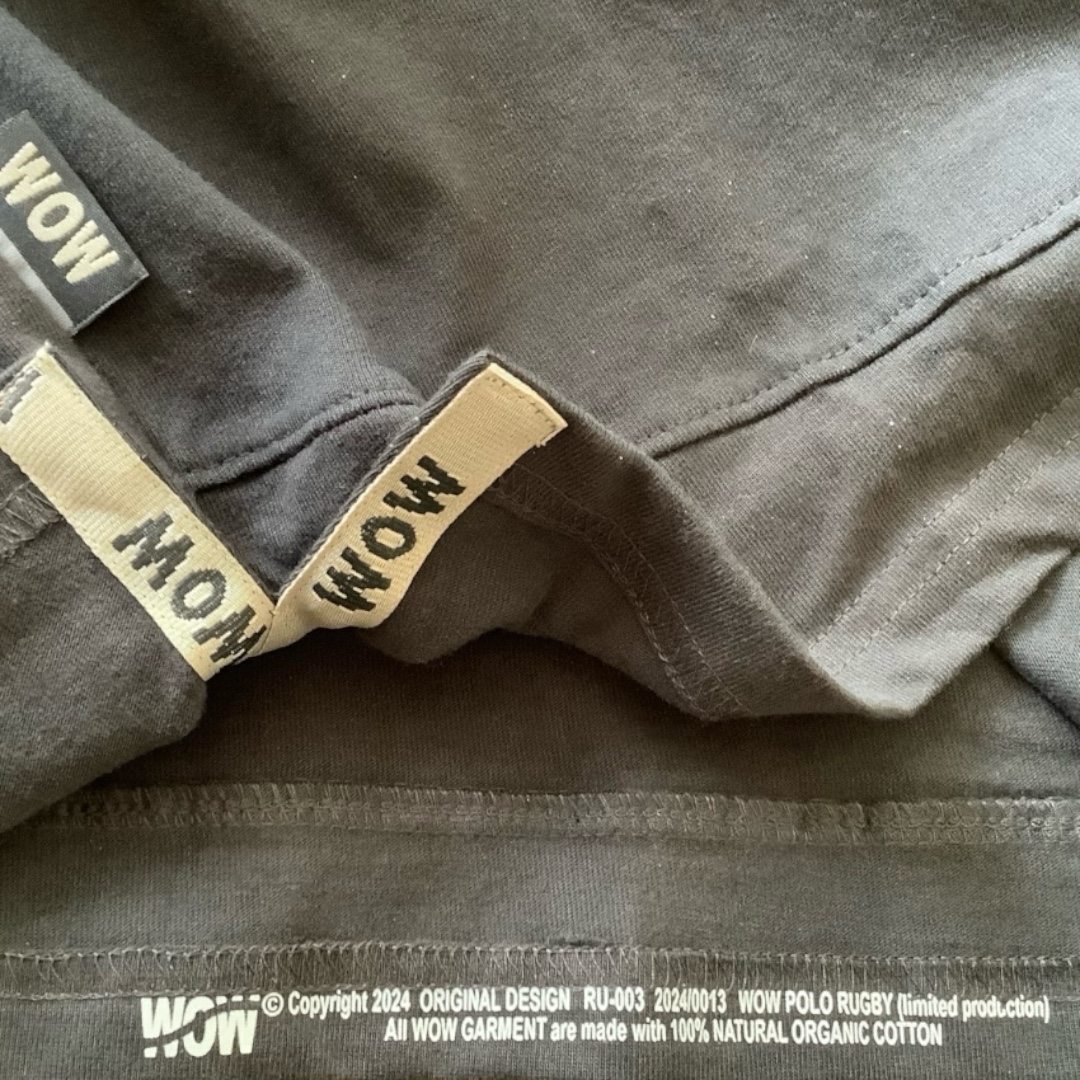 – Bordado WOW en el pecho y en el cuello (parte trasera)